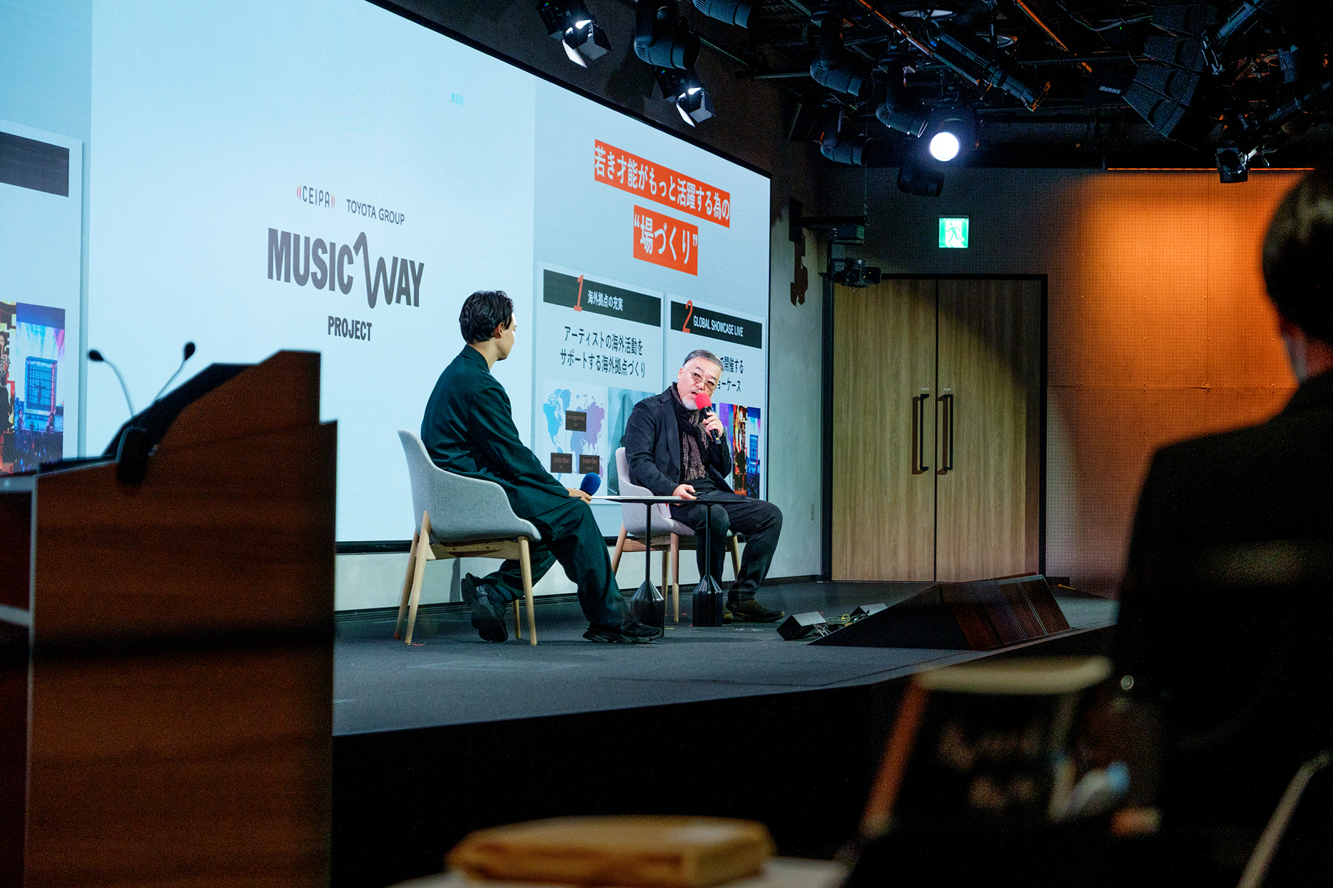 熊部太郎氏(一般社団法人日本音楽制作者連盟理事)の挨拶で幕を開けたセミナーは、まず「Introduction from CEIPA」と題したブロックへ。一般社団法人カルチャー アンド エンタテインメント産業振興会(CEIPA)とTOYOTA GROUPによる「CEIPA x TOYOTA GROUP “MUSIC WAY PROJECT”」設立の思いを、武田淳一郎氏(トヨタ・コニック・プロ株式会社代表取締役社長)が改めて熱弁。日本の音楽産業の発展を応援するための共創プロジェクトであること、“人づくり(学びの機会創出)”と“場づくり(海外での活動拠点設置など)”の2軸で推進されるものであることなど基本理念のおさらいに始まり、自動車産業を根幹とするTOYOTA GROUPがなぜ音楽業界を応援するのか、これからの時代に求められる価値とは何かといった、この時代に求められる共創の姿勢に関する話題を中心にフランクな口調で雄弁に語った。