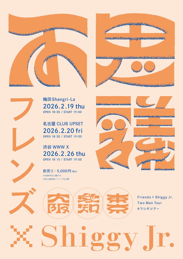 フレンズとShiggy Jr.がツーマンツアー「フシギツアー」が2026年2月に開催される。