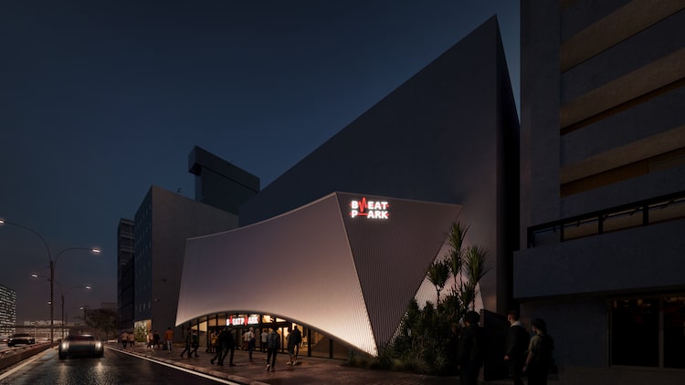 施設名称である「(仮称)BEAT PARK」には、「鼓動が響き合うライブを中心に、食を楽しみ、人と語らい、思いを交わす場所。アーティストとファンの皆さまの熱い想いを共鳴させる場になってほしい」という思いが込められており、ロゴは、音の波形から着想した1本の「ライン」を核にデザインされた。 この線は、ステージと客席、ホワイエをつなぐ「熱狂の軌跡」を描き、波形のデザインで身体に響く“BEAT”を視覚化している。