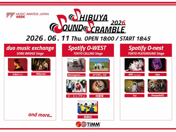 6月11日に東京・渋谷のライブハウス3会場でライブイベント「MUSIC AWARDS JAPAN WEEK SPECIAL LIVEーShibuya Sound Scramble 2026ー」が同時開催される。